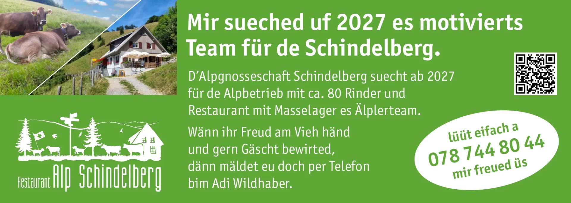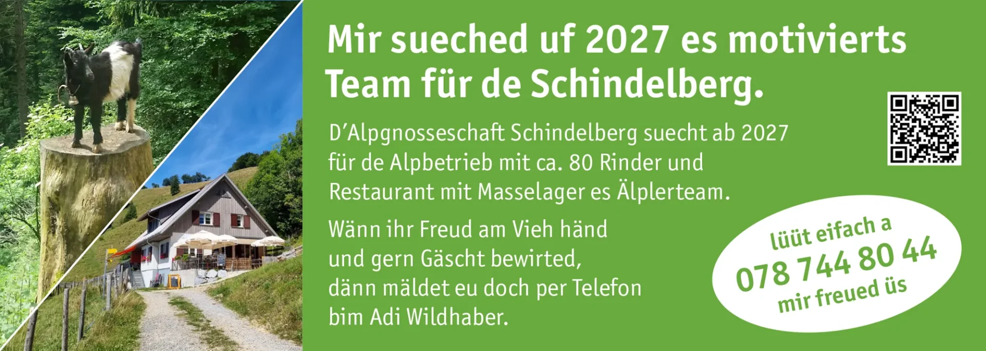 Wir freuen uns riesig auf dem Schindelberg alt Bewährtes mit frischem Wind zu kombinieren. Die Alp Schindelberg hat eine lange Tradition die nicht verloren gehen darf. Mit neuem Elan und vielen Ideen geben wir unser Bestes für das Wohl der Gäste und Tiere.
